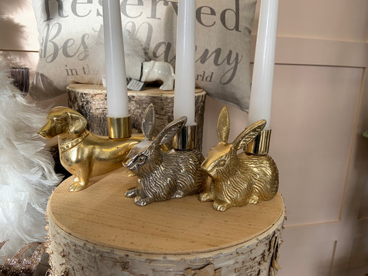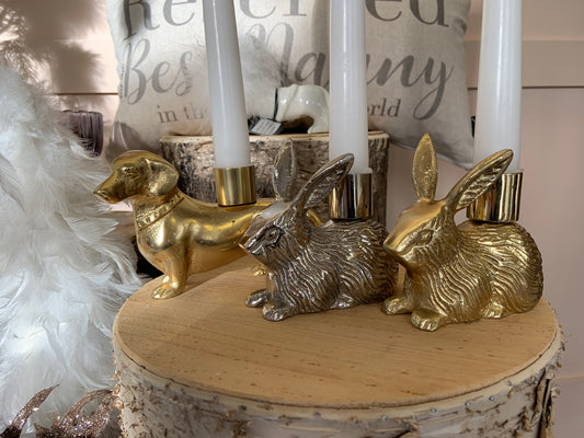 Bunny Rabbit Single Candle Holder - Shiny Gold Finish