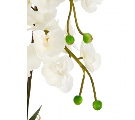 White Orchid Plant with Silver Ceramic Pot