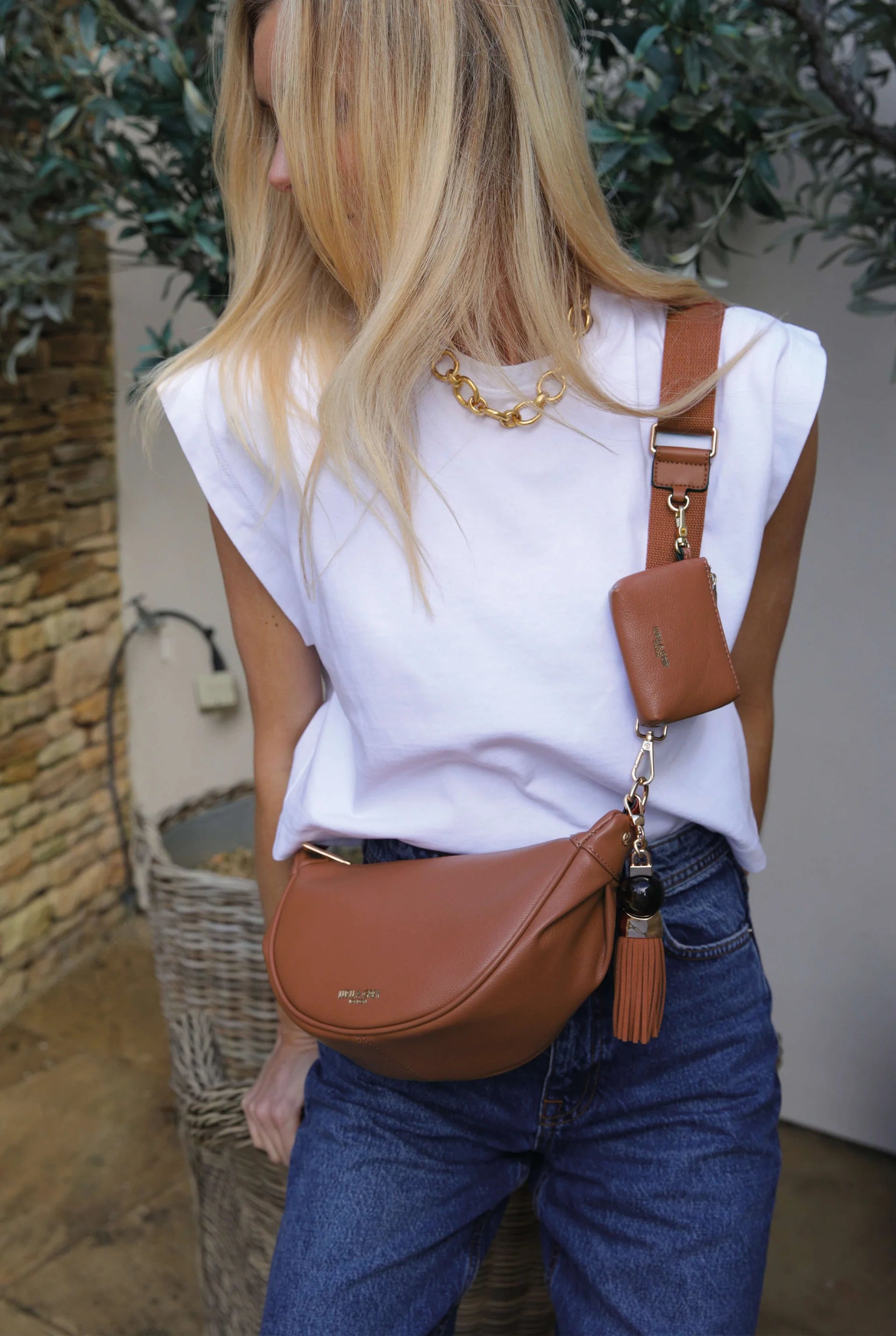 Lauren is a sling bag designed for style and functionality, and a more casual half-moon shaped, sporty, sling bag! Lauren's canvas strap comes complete with the detachable miniature zip top Edna purse charm which can be clipped on or off as you please. Edna is perfect for keeping your earpods, keys or cards in place and near you when you want them. This roomy zip top bag fits all your essentials - popping out never looked so stylish!
